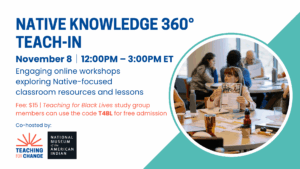 The annual Native Knowledge 360° Teach-In, hosted by the Smithsonian’s National Museum of the American Indian in collaboration with Teaching for Change, is an opportunity for educators around the world to access classroom resources from NMAI’s online education portal Native Knowledge 360°, the Zinn Education Project, and more. This event will be hosted ONLINE via Zoom.